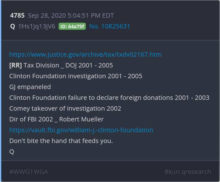 Clinton Foundation investigation 2001 - 2005 GJ empaneled Clinton Foundation failure to declare foreign donations 2001 - 2003 Comey takeover of investigation 2002 Dir of FBI 2002 _ Robert Mueller