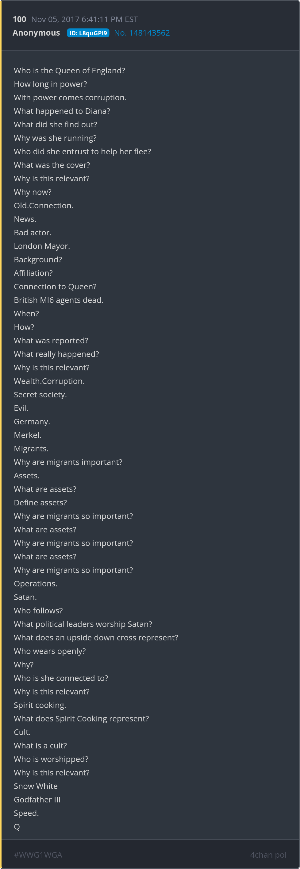Accountability | Ain't Right | Antifa | Anything For A Buck | Awry | Bezmenov | Birx | Bulldada! | Climate Change | Clinton | Comey | Dance | Enjoy The Show | FAFO | Farking Icehole | Fauci | FISA | Fuck Em | Funny Peculiar | Glorious | Haiti | Hello | Hokey Smokes | How Not To Be Seen | Industrial | Isn't It Moronic? | Knowingly | McConnell | MOAB | Moron | Narcissism | Oh Noes! | Oregon | Pain | Pedo | Pelosi | Pizza | Portland | Randi | Retribution | Ritual | Ruh Roh | Satanic | Schiff | Silly Rabbit | Symbolism Will Be Their Downfall | Thanks, Ted | Treason | Tribunal | Ukraine | Unrecognizable | Watermelon | We Remember Everything. And Everybody. | What Go Around Come Around, Kid | Where Did All The Money Go? | Wise Up | Wut? | Yellen Is Possibly One Of The Dumbest People On The Planet | You Are An Unprotected Civilian Caught In An Information War | You Are Being Programmed | You Are Watching A Movie