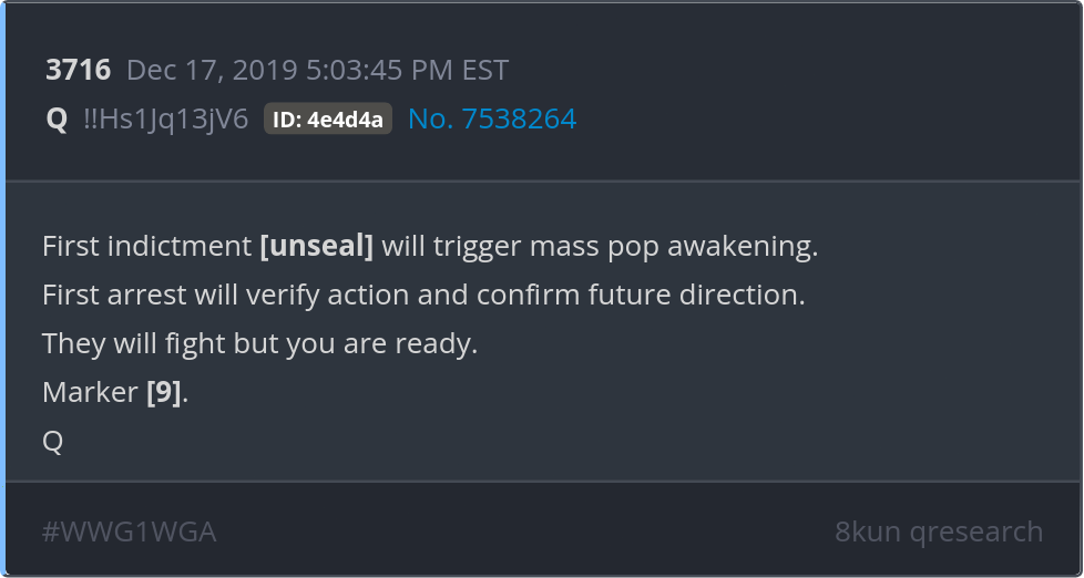 First indictment [unseal] will trigger mass pop awakening. First arrest will verify action and confirm future direction. They will fight but you are ready. Posted 12/16/2024 09:46 PM Categories Clips, Q