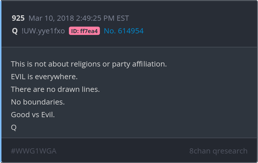 EVIL is everywhere. There are no drawn lines. No boundaries. Good vs Evil. Posted 03/09/2025 09:24 PM Categories Clips, Q