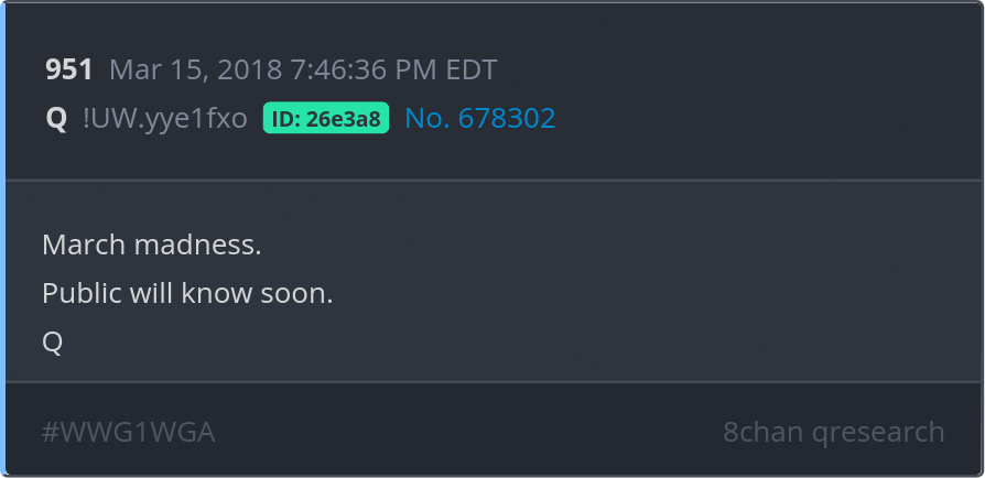 March madness. Public will know soon.
