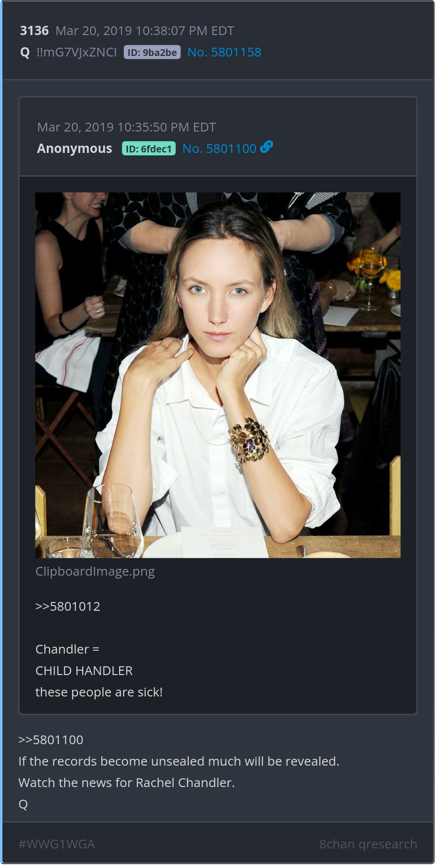If the records become unsealed much will be revealed. Watch the news for Rachel Chandler. Posted 03/19/2025 10:12 PM Categories Clips, Q