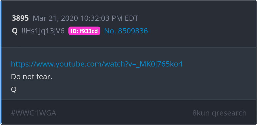 Do not fear. https://www.youtube.com/watch?v=_MK0j765ko4 Posted 03/20/2025 08:58 PM Categories Clips, Q