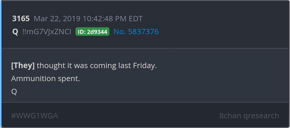 [They] thought it was coming last Friday. Ammunition spent. Posted 03/21/2025 09:20 PM Categories Clips, Q