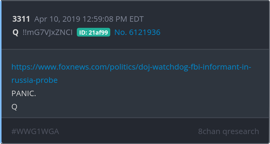 PANIC. https://www.foxnews.com/politics/doj-watchdog-fbi-informant-in-russia-probe Posted 04/09/2025 09:45 PM Categories Clips, Q
