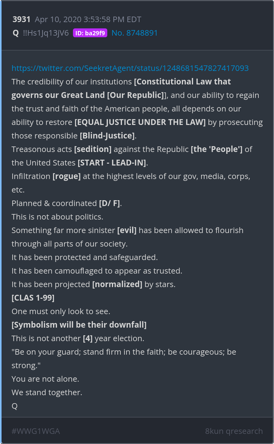 One must only look to see. [Symbolism will be their downfall] Posted 04/09/2025 09:51 PM Categories Clips, Q