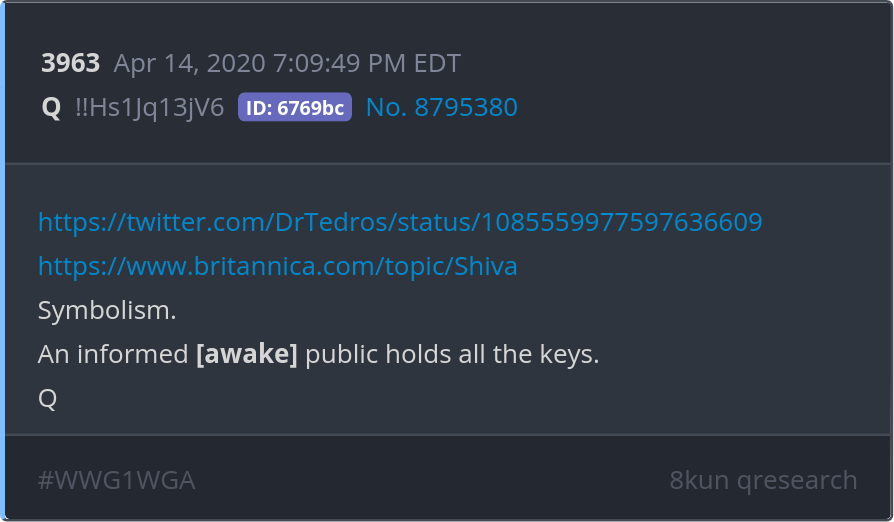 Symbolism. An informed [awake] public holds all the keys. https://twitter.com/DrTedros/status/1085559977597636609 Posted 04/13/2025 08:41 PM Categories Clips, Q