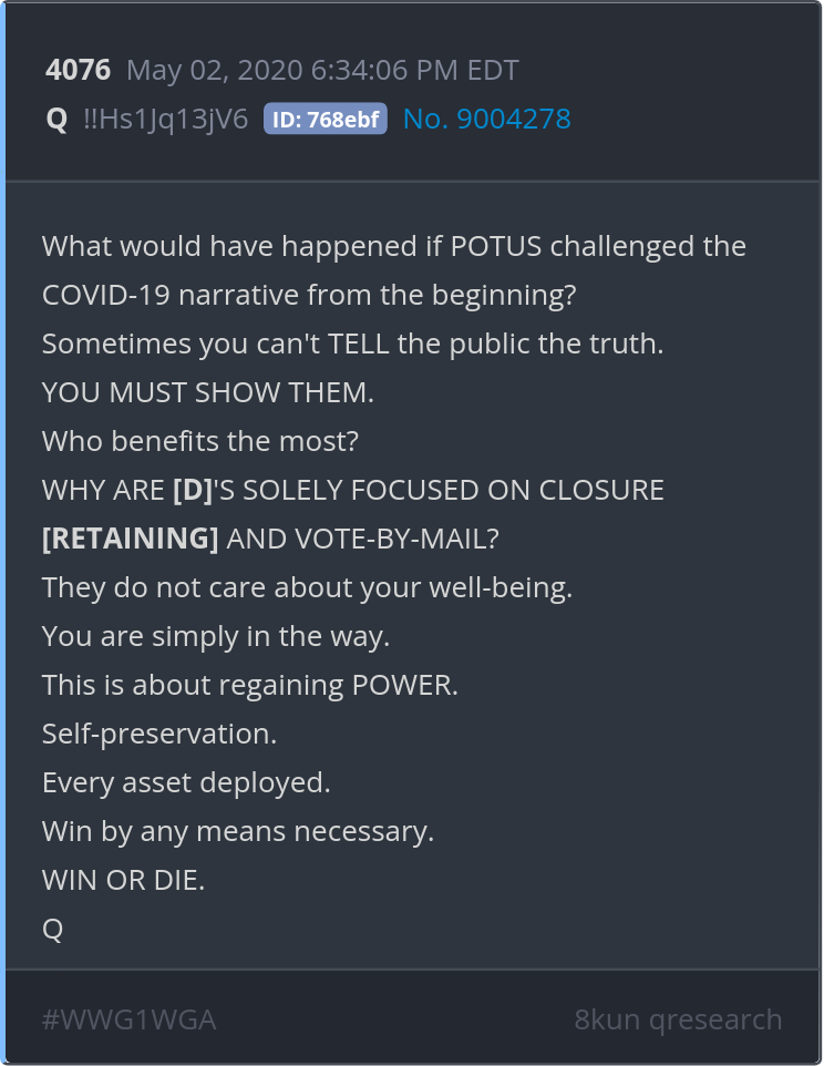They do not care about your well-being. You are simply in the way. This is about regaining POWER. Self-preservation. Every asset deployed. Win by any means necessary. WIN OR DIE. Posted 05/01/2025 08:59 PM Categories Clips, Q
