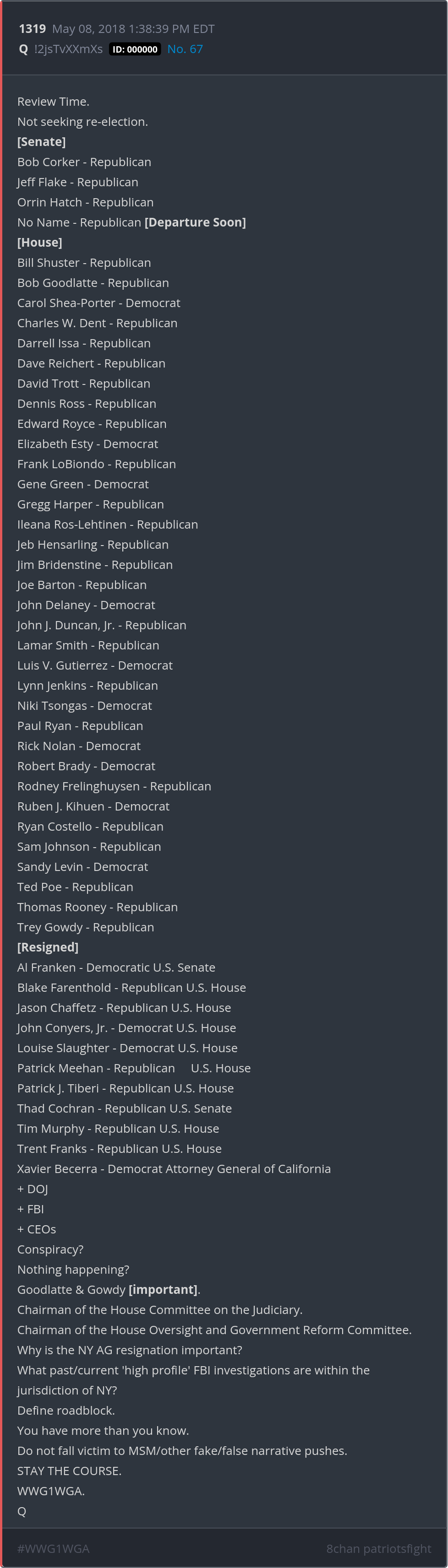 You have more than you know. Do not fall victim to MSM/other fake/false narrative pushes. STAY THE COURSE. WWG1WGA. Posted 05/07/2025 09:23 PM Categories Clips, Q