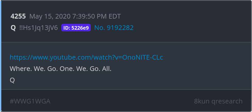 Where. We. Go. One. We. Go. All. https://www.youtube.com/watch?v=OnoNITE-CLc Posted 05/14/2025 08:47 PM Categories Clips, Q