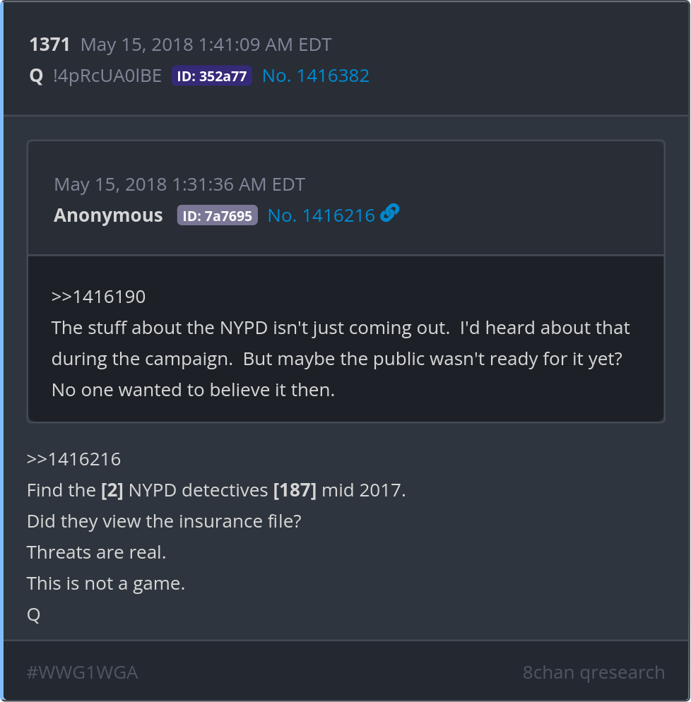 Find the [2] NYPD detectives [187] mid 2017. Did they view the insurance file? Threats are real. This is not a game. Posted 05/14/2025 09:03 PM Categories Clips, Q