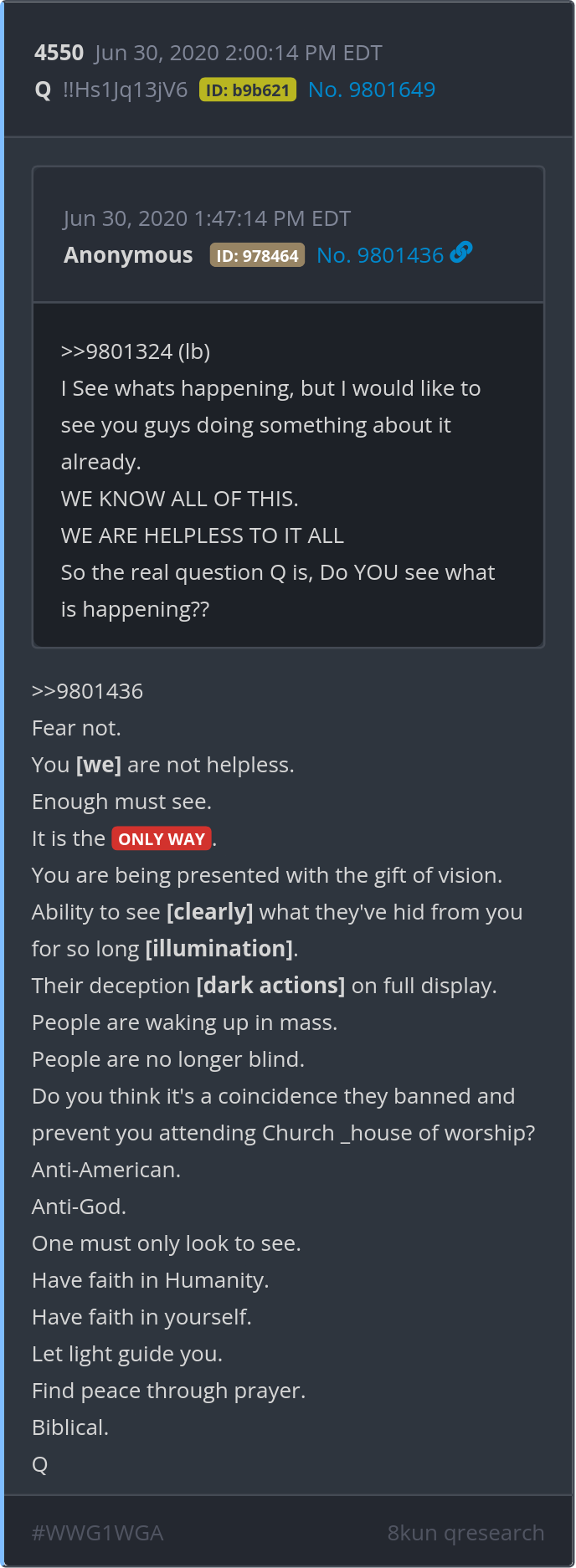 Fear not. You [we] are not helpless. Enough must see. It is the ONLY WAY. Posted 05/21/2025 01:28 PM Categories Clips, Q