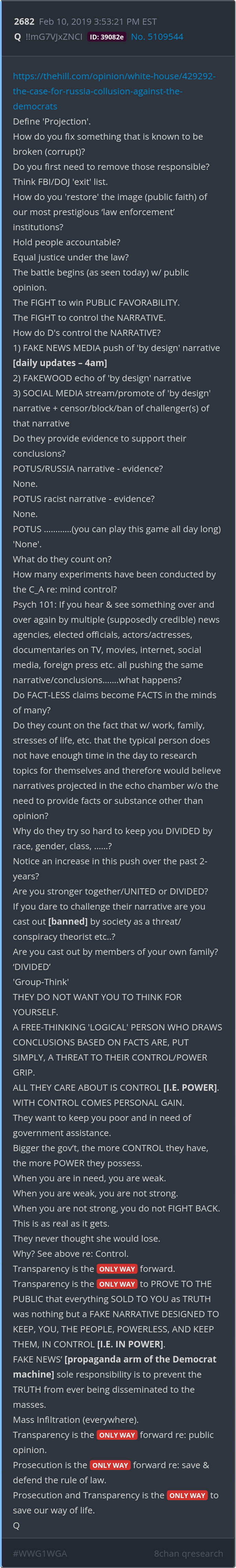 Transparency is the ONLY WAY to PROVE TO THE PUBLIC that everything SOLD TO YOU as TRUTH was nothing but a FAKE NARRATIVE DESIGNED TO KEEP, YOU, THE PEOPLE, POWERLESS, AND KEEP THEM, IN CONTROL [I.E. IN POWER]. Posted 05/21/2025 01:40 PM Categories Clips, Q