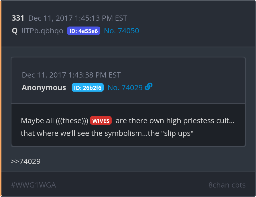 Maybe all (((these))) wives are there own high priestess cult…that where we’ll see the symbolism…the "slip ups" Posted 05/26/2025 01:15 PM Categories Clips, Q