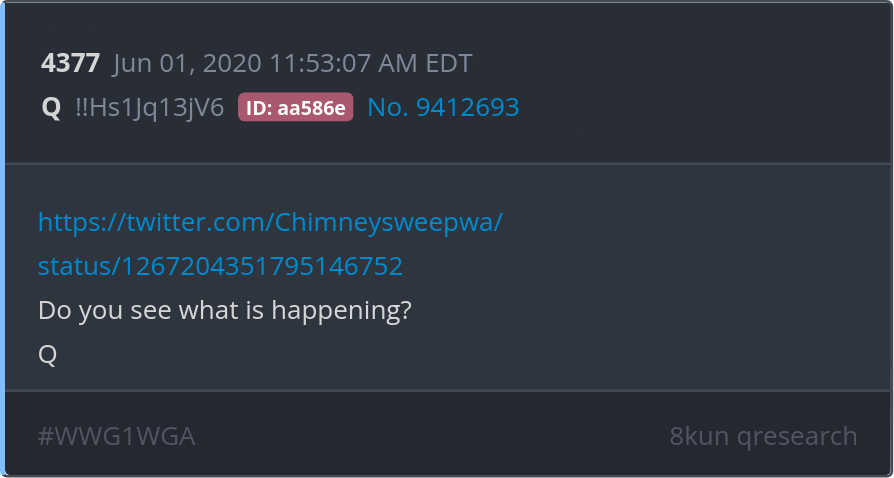 Do you see what is happening? https://twitter.com/Chimneysweepwa/status/1267204351795146752 Posted 05/31/2025 09:42 PM Categories Clips, Q