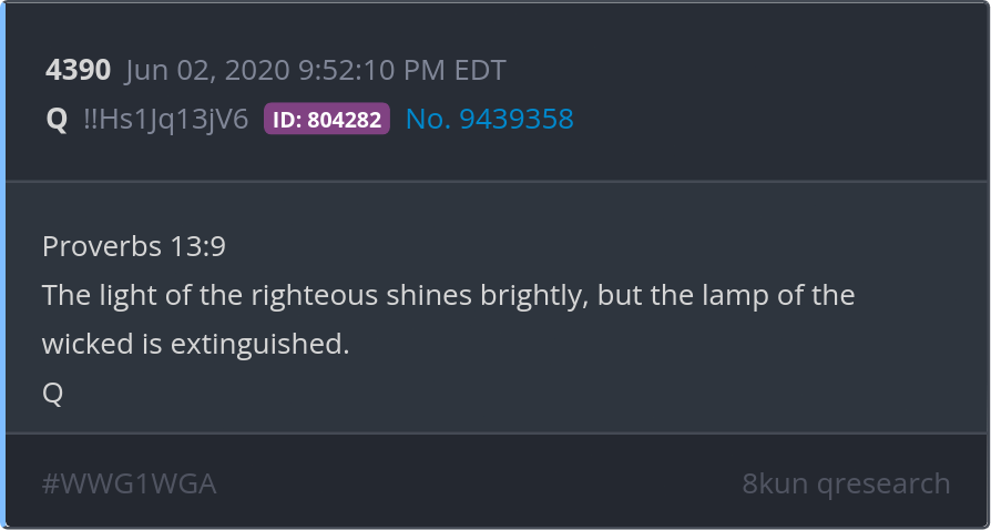 Proverbs 13:9 The light of the righteous shines brightly, but the lamp of the wicked is extinguished. Posted 06/01/2025 09:26 PM Categories Clips, Q