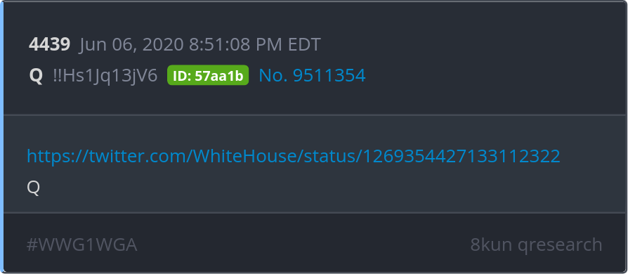 https://twitter.com/WhiteHouse/status/1269354427133112322 https://twitter.com/WhiteHouse/status/1269354427133112322 Posted 06/05/2025 08:42 PM Categories Clips, Q