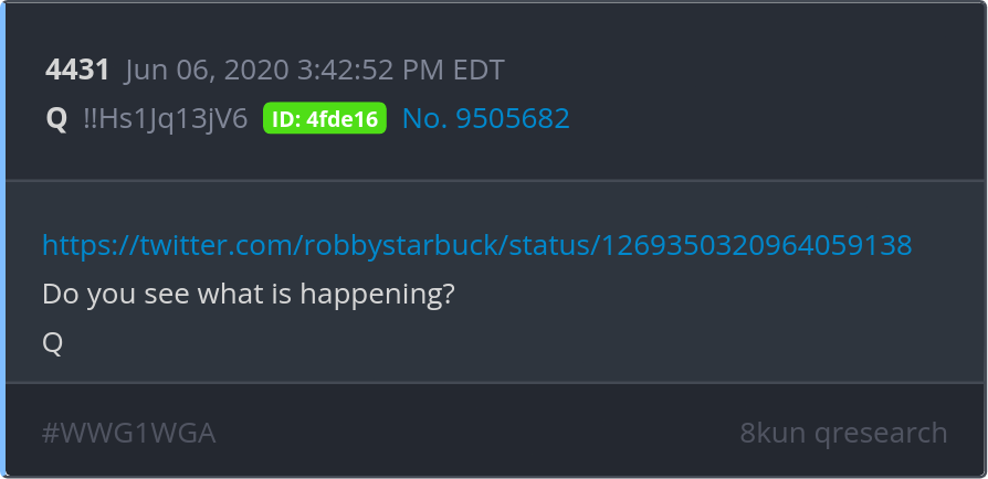Do you see what is happening? https://twitter.com/robbystarbuck/status/1269350320964059138 Posted 06/05/2025 08:55 PM Categories Clips, Q
