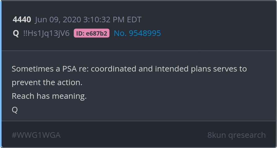 Sometimes a PSA re: coordinated and intended plans serves to prevent the action. Reach has meaning. Posted 06/08/2025 09:15 PM Categories Clips, Q