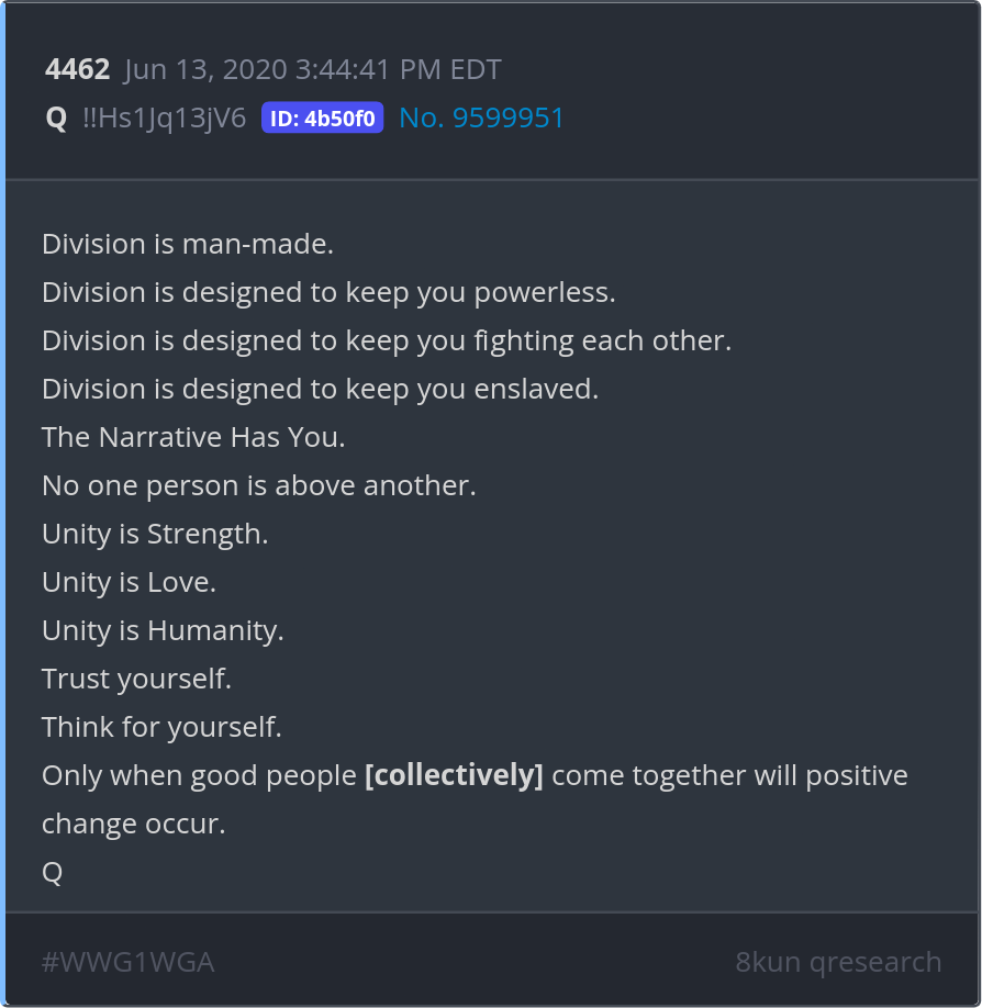 Trust yourself. Think for yourself. Only when good people [collectively] come together will positive change occur. Posted 06/12/2025 08:30 PM Categories Clips, Q