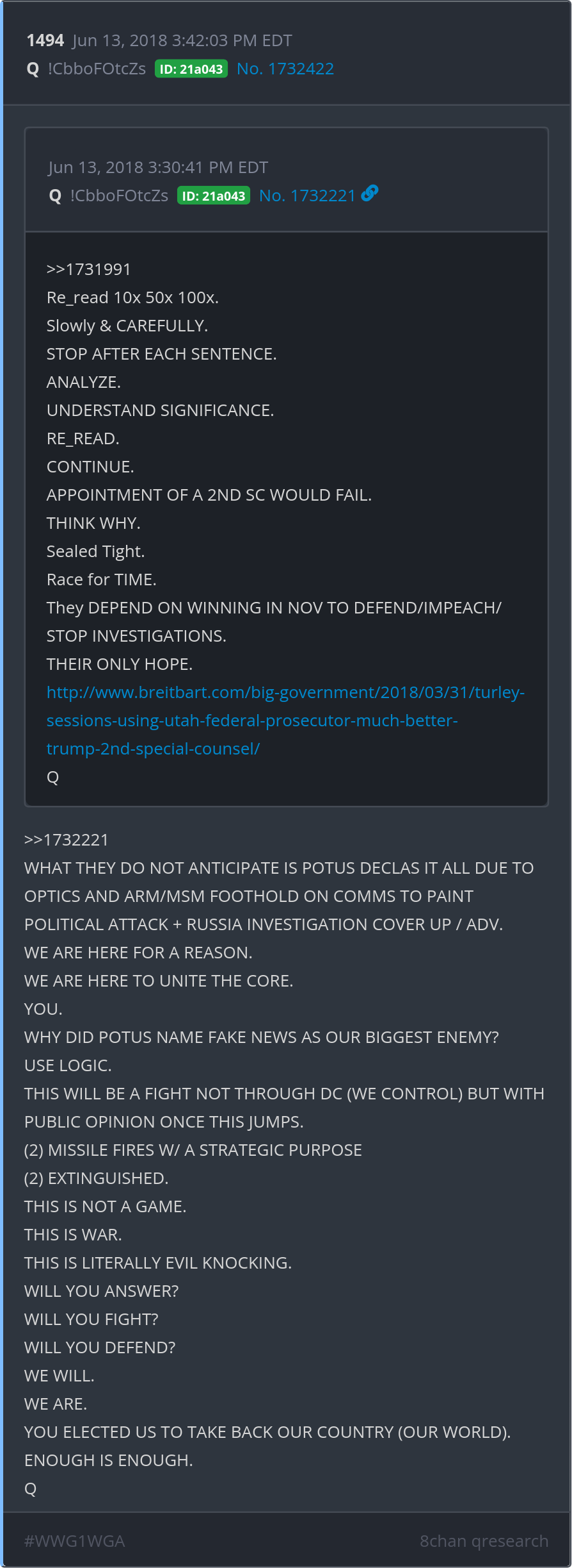 THIS IS NOT A GAME. THIS IS WAR. THIS IS LITERALLY EVIL KNOCKING. WILL YOU ANSWER? WILL YOU FIGHT? WILL YOU DEFEND? WE WILL. WE ARE. http://www.breitbart.com/big-government/2018/03/31/turley-sessions-using-utah-federal-prosecutor-much-better-trump-2nd-special-counsel/ Posted 06/12/2025 08:41 PM Categories Clips, Q