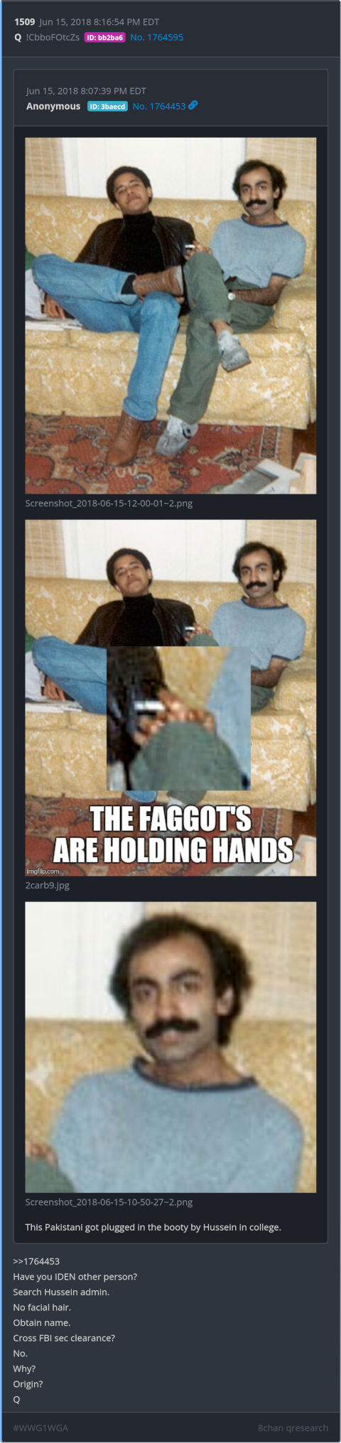 Have you IDEN other person? Search Hussein admin. No facial hair. Obtain name. Cross FBI sec clearance? No. Why? Origin? Posted 06/14/2025 08:58 PM Categories Clips, Q