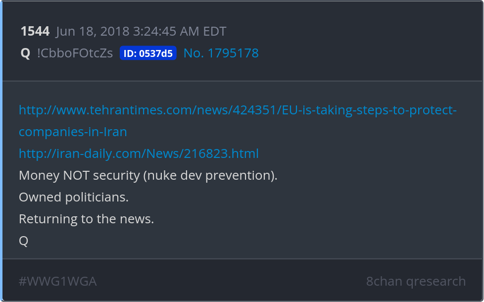 Money NOT security (nuke dev prevention). Owned politicians. Returning to the news. http://www.tehrantimes.com/news/424351/EU-is-taking-steps-to-protect-companies-in-Iran Posted 06/17/2025 09:11 PM Categories Clips, Q