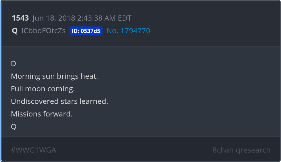 Morning sun brings heat. Full moon coming. Undiscovered stars learned. Missions forward. Posted 06/17/2025 09:11 PM Categories Clips, Q