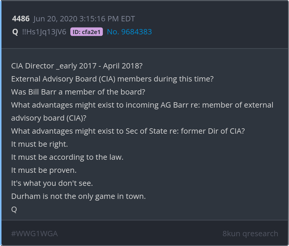 It must be right. It must be according to the law. It must be proven. It's what you don't see. Durham is not the only game in town. Posted 06/19/2025 08:39 PM Categories Clips, Q
