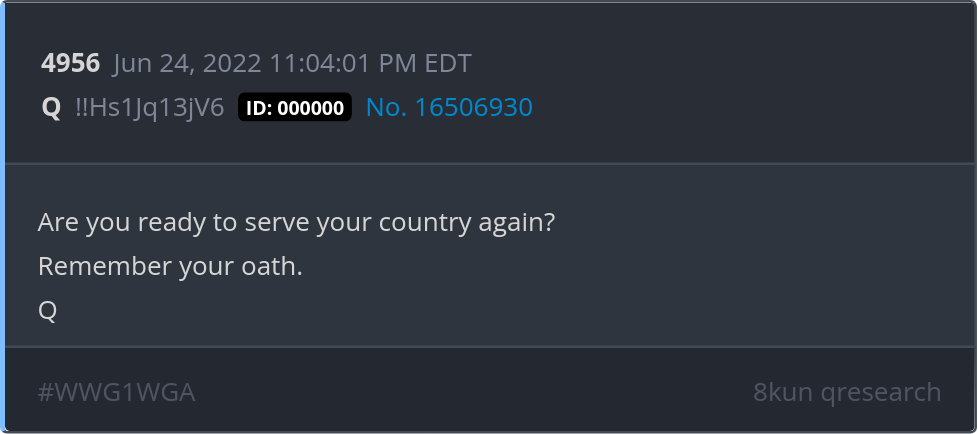 Are you ready to serve your country again? Remember your oath. Posted 06/23/2025 08:29 PM Categories Clips, Q