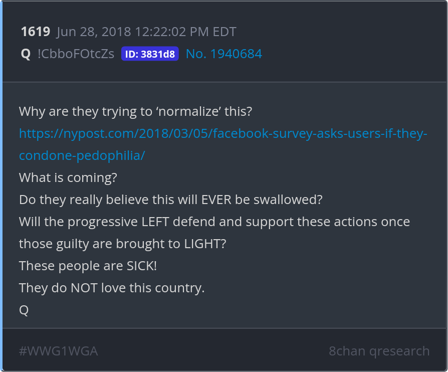 Why are they trying to ‘normalize’ this? What is coming? https://nypost.com/2018/03/05/facebook-survey-asks-users-if-they-condone-pedophilia/ Posted 06/27/2025 09:21 PM Categories Clips, Q
