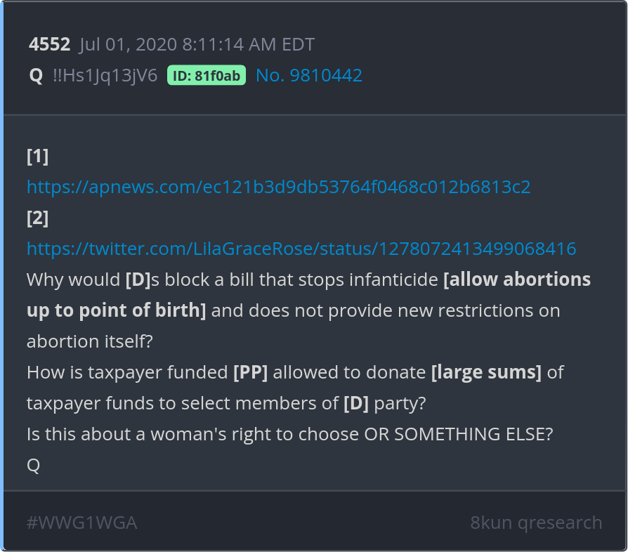How is taxpayer funded [PP] allowed to donate [large sums] of taxpayer funds to select members of [D] party? Is this about a woman's right to choose OR SOMETHING ELSE? https://apnews.com/ec121b3d9db53764f0468c012b6813c2 https://twitter.com/LilaGraceRose/status/1278072413499068416 Posted 07/01/2025 08:20 AM Categories Clips, Q