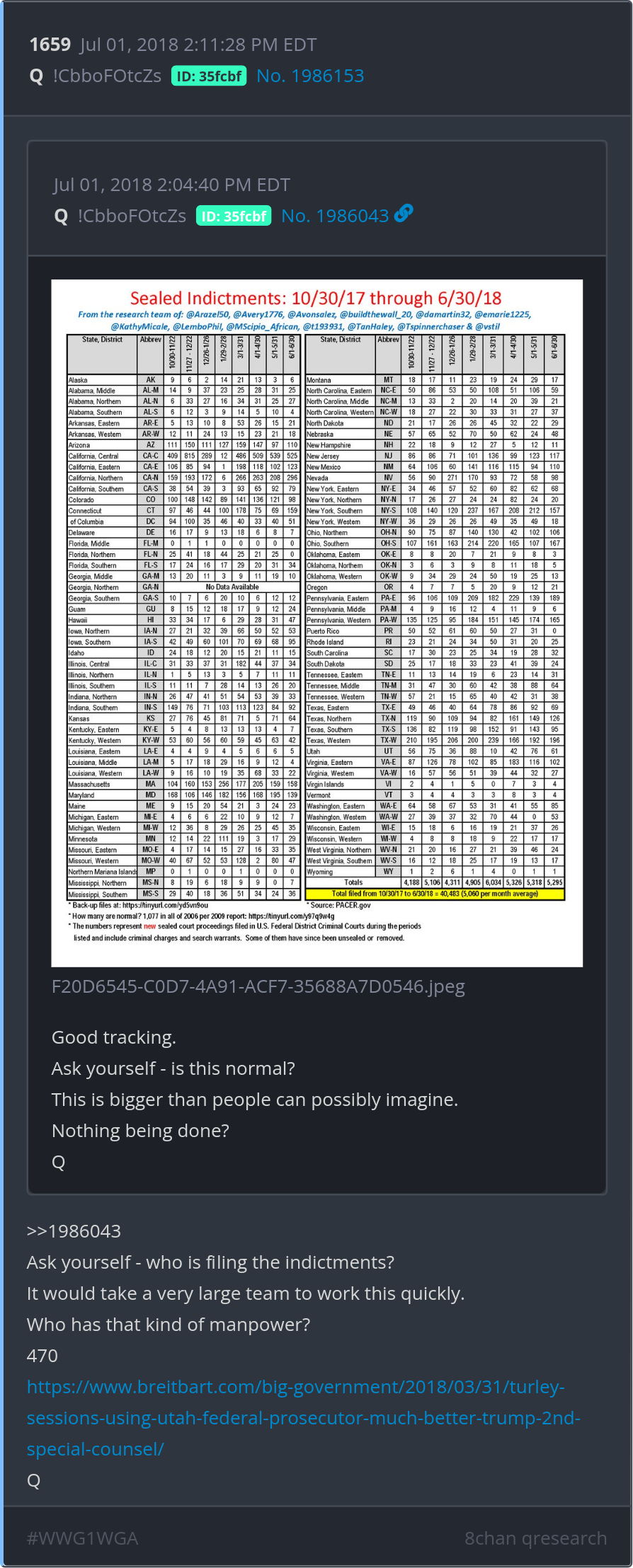 Ask yourself - who is filing the indictments? It would take a very large team to work this quickly. Who has that kind of manpower? 470 https://www.breitbart.com/big-government/2018/03/31/turley-sessions-using-utah-federal-prosecutor-much-better-trump-2nd-special-counsel/ Posted 07/01/2025 08:30 AM Categories Clips, Q