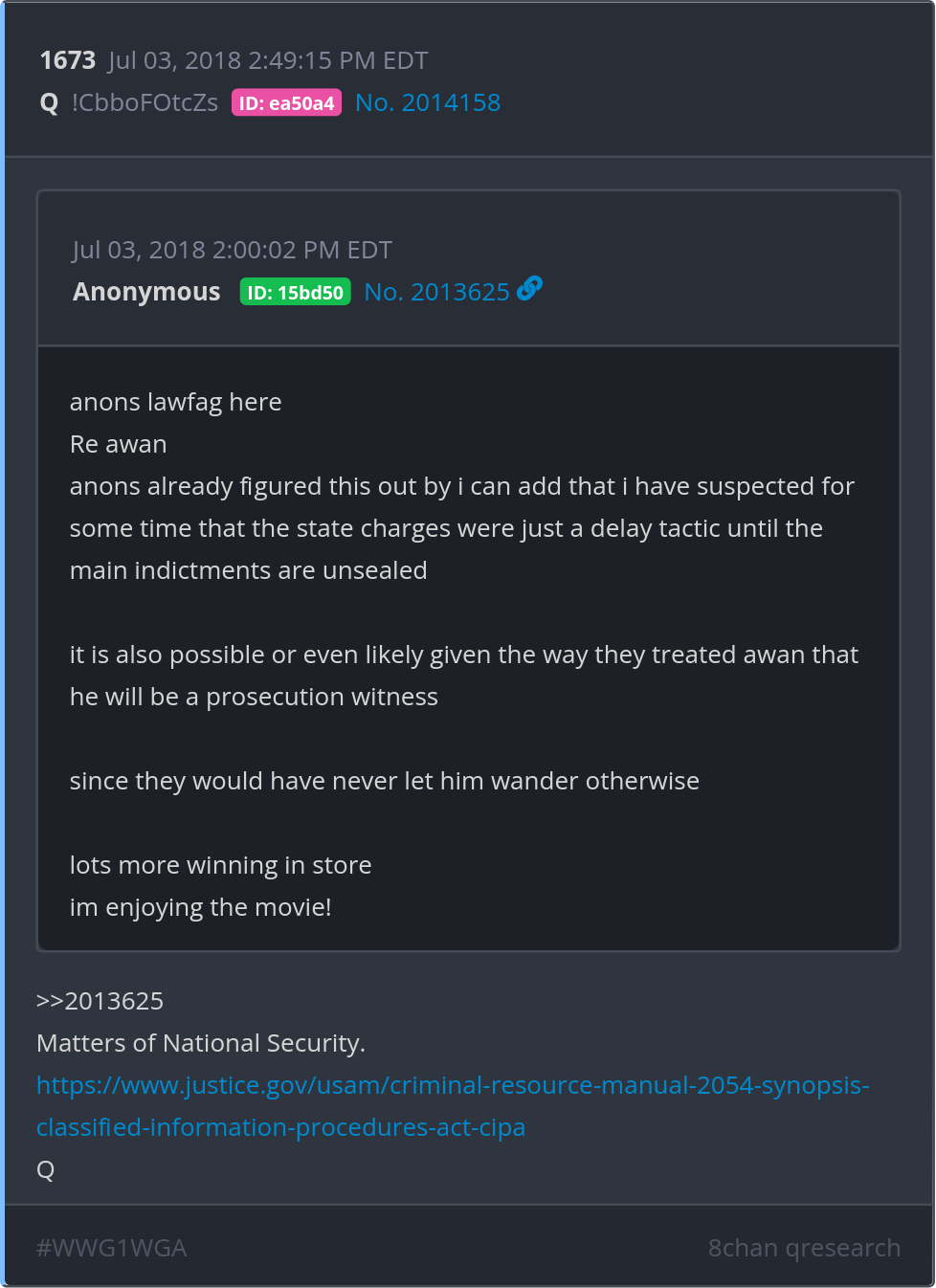Matters of National Security. https://www.justice.gov/usam/criminal-resource-manual-2054-synopsis-classified-information-procedures-act-cipa Posted 07/02/2025 09:09 PM Categories Clips, Q