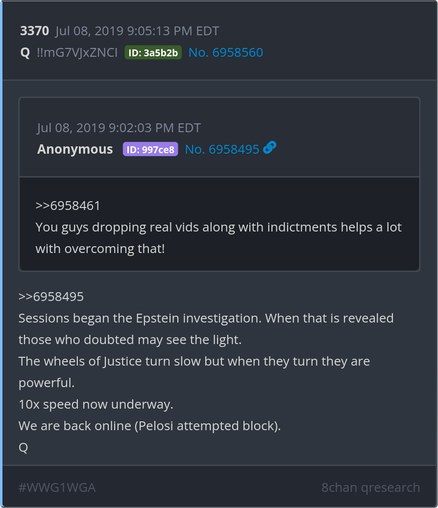 Sessions began the Epstein investigation. When that is revealed those who doubted may see the light. The wheels of Justice turn slow but when they turn they are powerful. Posted 07/08/2025 08:07 AM Categories Clips, Q