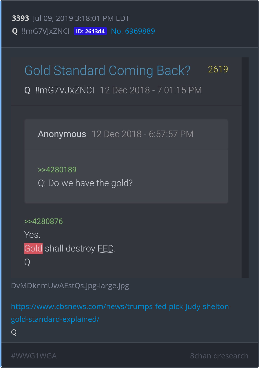 Gold shall destroy FED. https://www.cbsnews.com/news/trumps-fed-pick-judy-shelton-gold-standard-explained/ Posted 07/08/2025 09:04 PM Categories Clips, Q