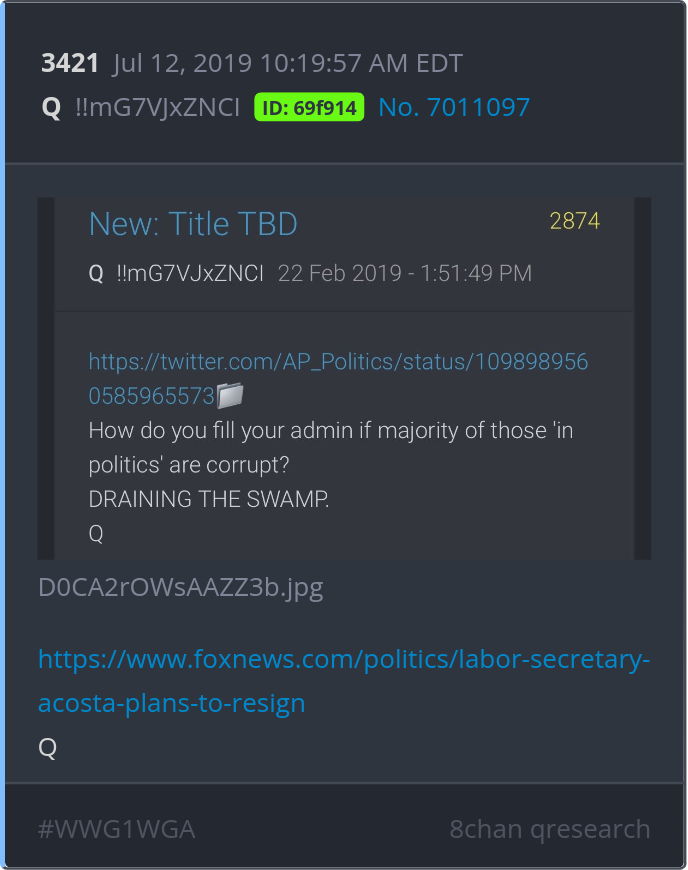 DRAINING THE SWAMP. https://www.foxnews.com/politics/labor-secretary-acosta-plans-to-resign Posted 07/11/2025 08:39 PM Categories Clips, Q
