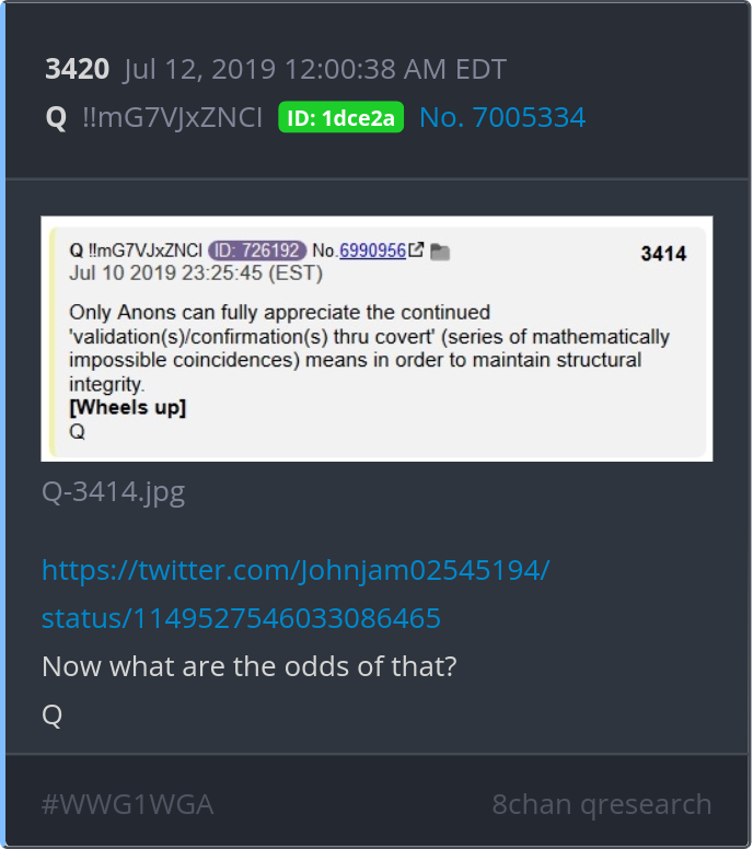 Now what are the odds of that? https://twitter.com/Johnjam02545194/status/1149527546033086465 Posted 07/11/2025 08:41 PM Categories Clips, Q