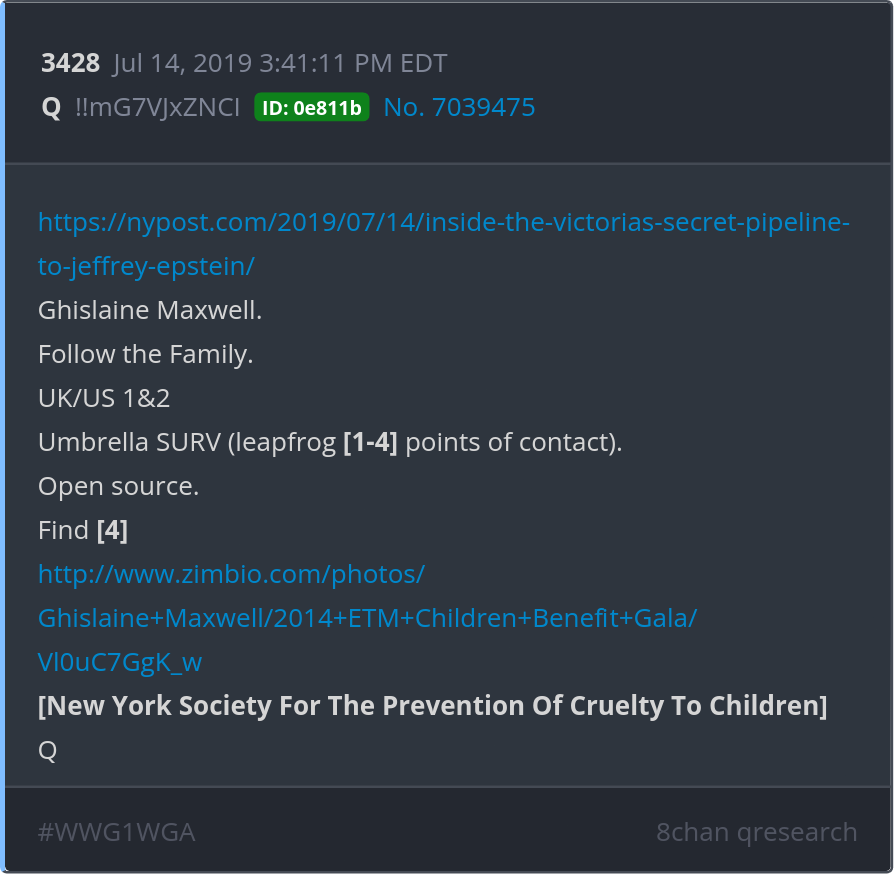 Ghislaine Maxwell. Follow the Family. [New York Society For The Prevention Of Cruelty To Children] https://nypost.com/2019/07/14/inside-the-victorias-secret-pipeline-to-jeffrey-epstein/ http://www.zimbio.com/photos/Ghislaine+Maxwell/2014+ETM+Children+Benefit+Gala/Vl0uC7GgK_w Posted 07/13/2025 09:32 PM Categories Clips, Q