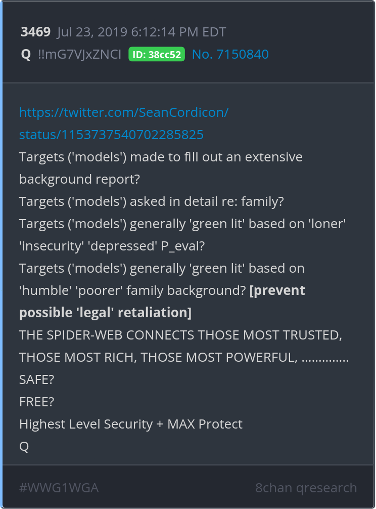 THE SPIDER-WEB CONNECTS THOSE MOST TRUSTED, THOSE MOST RICH, THOSE MOST POWERFUL, ………….. SAFE? FREE? Highest Level Security + MAX Protect https://twitter.com/SeanCordicon/status/1153737540702285825 Posted 07/22/2025 08:30 PM Categories Clips, Q