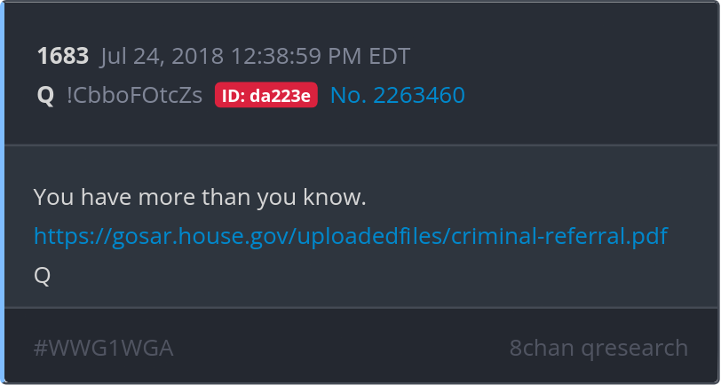 You have more than you know. https://gosar.house.gov/uploadedfiles/criminal-referral.pdf Posted 07/24/2025 08:20 AM Categories Clips, Q
