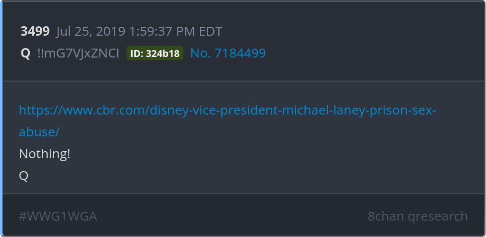 Nothing! https://www.cbr.com/disney-vice-president-michael-laney-prison-sex-abuse/ Posted 07/24/2025 08:33 PM Categories Clips, Q