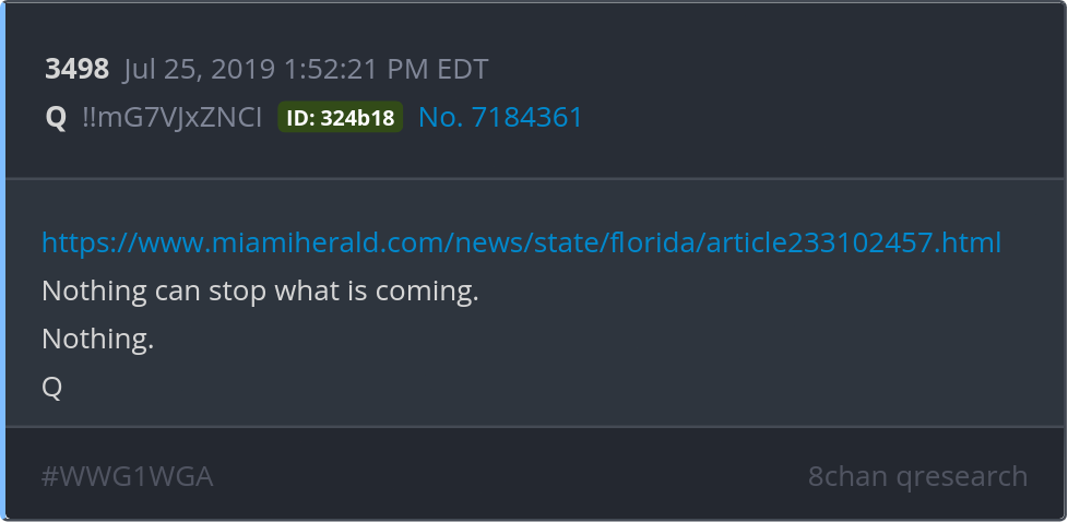 Nothing can stop what is coming. Nothing. https://www.miamiherald.com/news/state/florida/article233102457.html Posted 07/24/2025 08:35 PM Categories Clips, Q