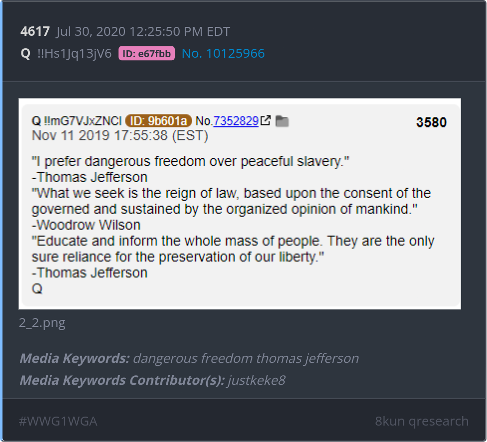 "Educate and inform the whole mass of people. They are the only sure reliance for the preservation of our liberty." -Thomas Jefferson Posted 07/29/2025 08:40 PM Categories Clips, Q