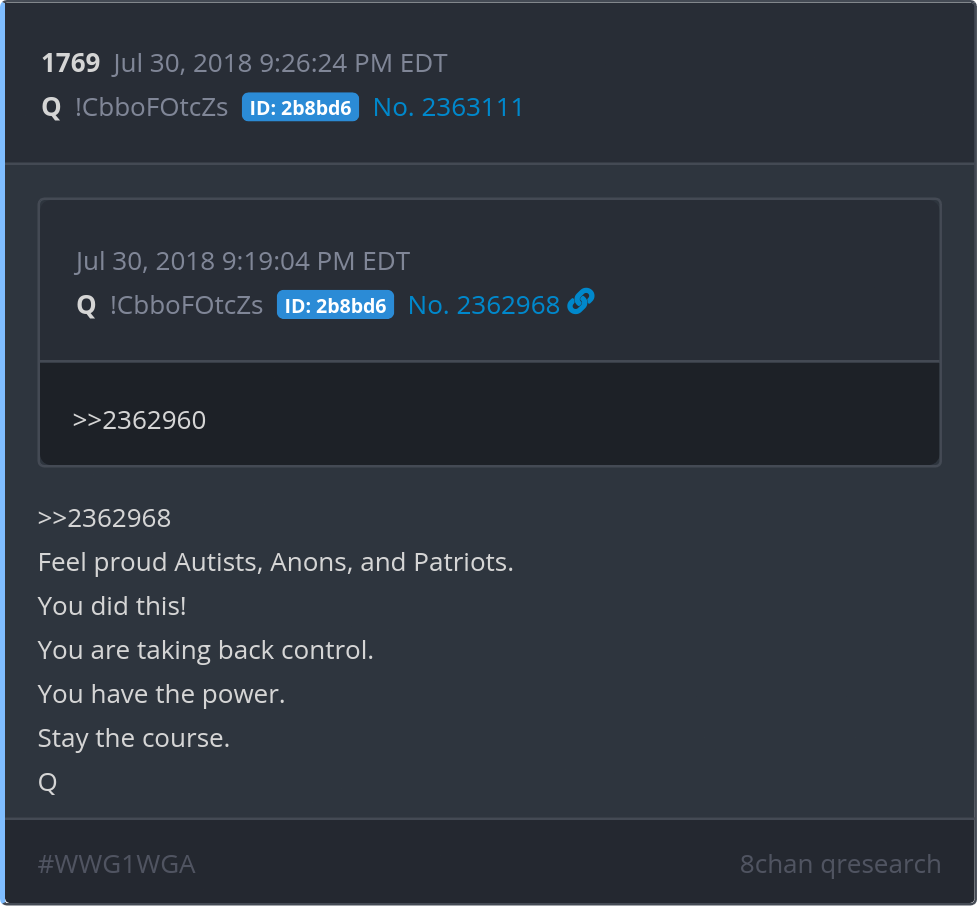Feel proud Autists, Anons, and Patriots. You did this! You are taking back control. You have the power. Stay the course. Posted 07/29/2025 09:04 PM Categories Clips, Q