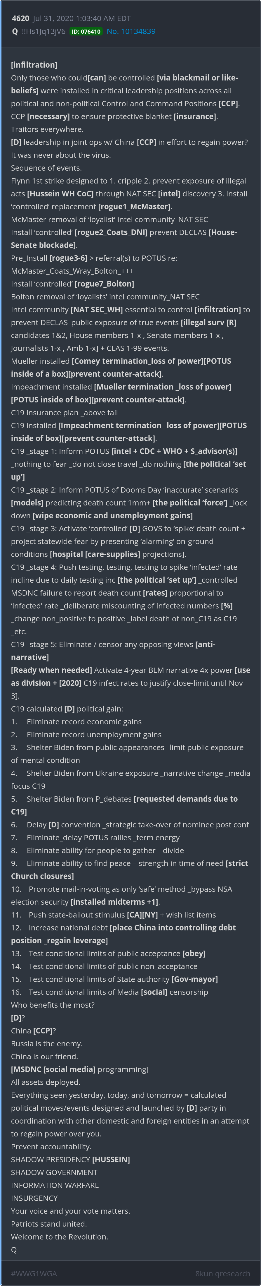 Only those who could[can] be controlled [via blackmail or like-beliefs] were installed in critical leadership positions across all political and non-political Control and Command Positions [CCP]. Posted 07/30/2025 08:57 PM Categories Clips, Q