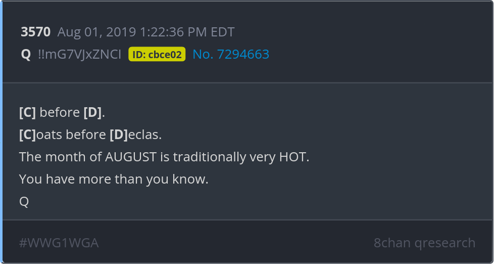 [C] before [D]. [C]oats before [D]eclas. The month of AUGUST is traditionally very HOT. You have more than you know. Posted 07/31/2025 09:19 PM Categories Clips, Q