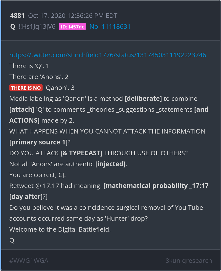 There is 'Q'. There are 'Anons'. THERE IS NO 'Qanon'.