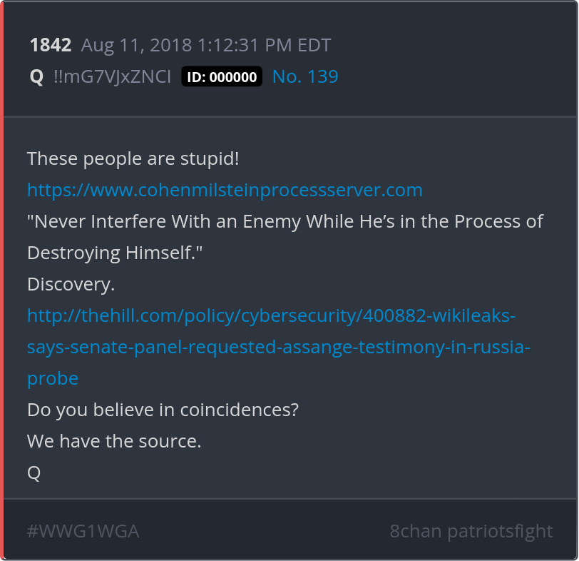 These people are stupid! https://www.cohenmilsteinprocessserver.com/ http://thehill.com/policy/cybersecurity/400882-wikileaks-says-senate-panel-requested-assange-testimony-in-russia-probe Posted 08/10/2025 09:44 PM Categories Clips, Q