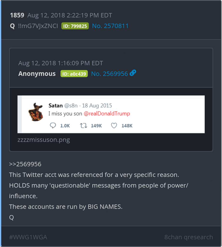 This Twitter acct was referenced for a very specific reason. HOLDS many 'questionable' messages from people of power/influence. These accounts are run by BIG NAMES. Posted 08/11/2025 09:32 PM Categories Clips, Q